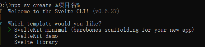 只需运行命令npx sv create %项目名%即可开始创建